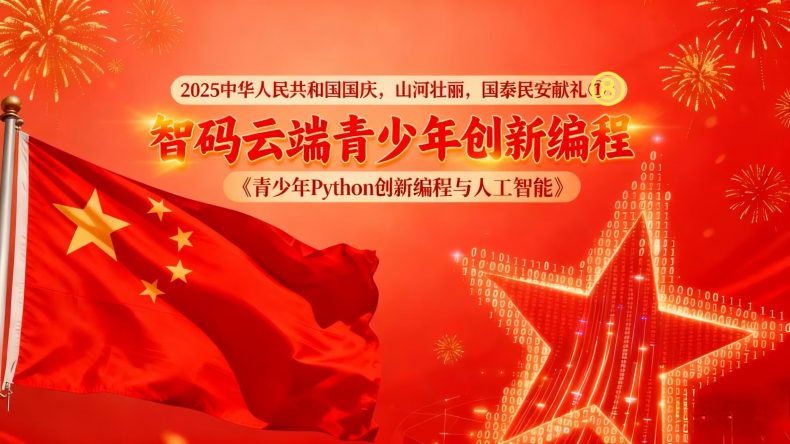 在中华人民共和国成立76周年的辉煌时刻,教育科技领域传来振奋人心的消息。智码云端旗下品牌”码力少年”作为入选中央广播电视总台2025年20个重点打造民族品牌的教育科技企业,正式推出《青少年Python创新编程与人工智能》课程体系。这一创新举措不仅体现了企业对国家战略的积极响应,更展现了以教育科技赋能人才培养的坚定决心,以实际行动向国庆献礼,践行”为党育人、为国育才“的战略使命。