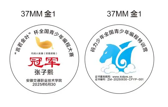热烈祝贺安徽交通职业技术学院张子熙同学以卓越的编程实力与创新思维,在2025“言若金叶”杯全国青少年编程大赛中率先突破,勇夺初级组冠军!✨ 你的每一行代码都是梦想的基石,每一次突破都闪耀着数字时代的新星光芒!