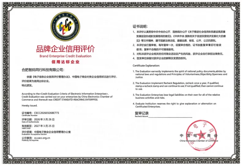 近日,我国电子信息产业领域传来佳音:杭州智码云端品牌发展有限公司与合肥智码同行科技有限公司于2026年3月26日,双双获得由中国电子商会颁发的“品牌企业信用评价——信用达标企业”认证。证书编号分别为CECC20260326BE772与CECC20260326BE773,标志着两家企业在规范经营、信用建设、社会责任履行等方面已达到国家行业权威标准。此次认证不仅是对企业自身发展的肯定,更是我国科技型企业深化信用体系建设、助力科技强国战略的生动实践。